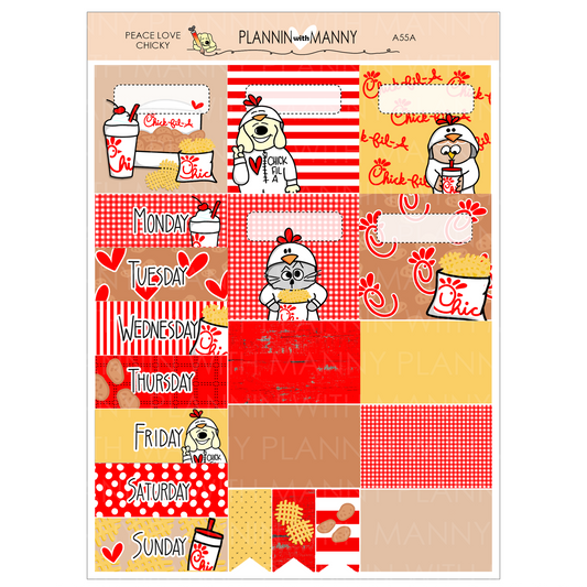 A55C Peace Love Chicky 1.5" Square Planner Stickers