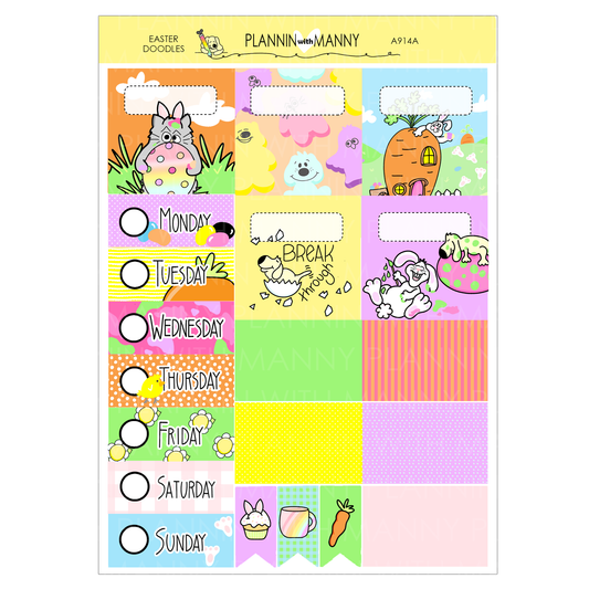 A914 ACADEMIC 5 & 7 Day Weekly Planner Kit and Hybrid Planner - Easter Doodles Collection