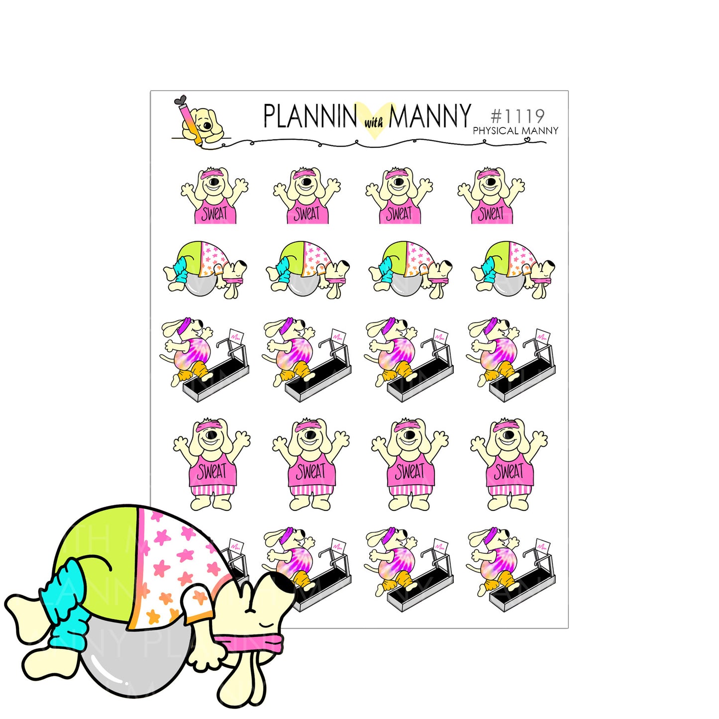 1119 Let's Get Physical Manny Planner Stickers - Let's Get Physical Collection