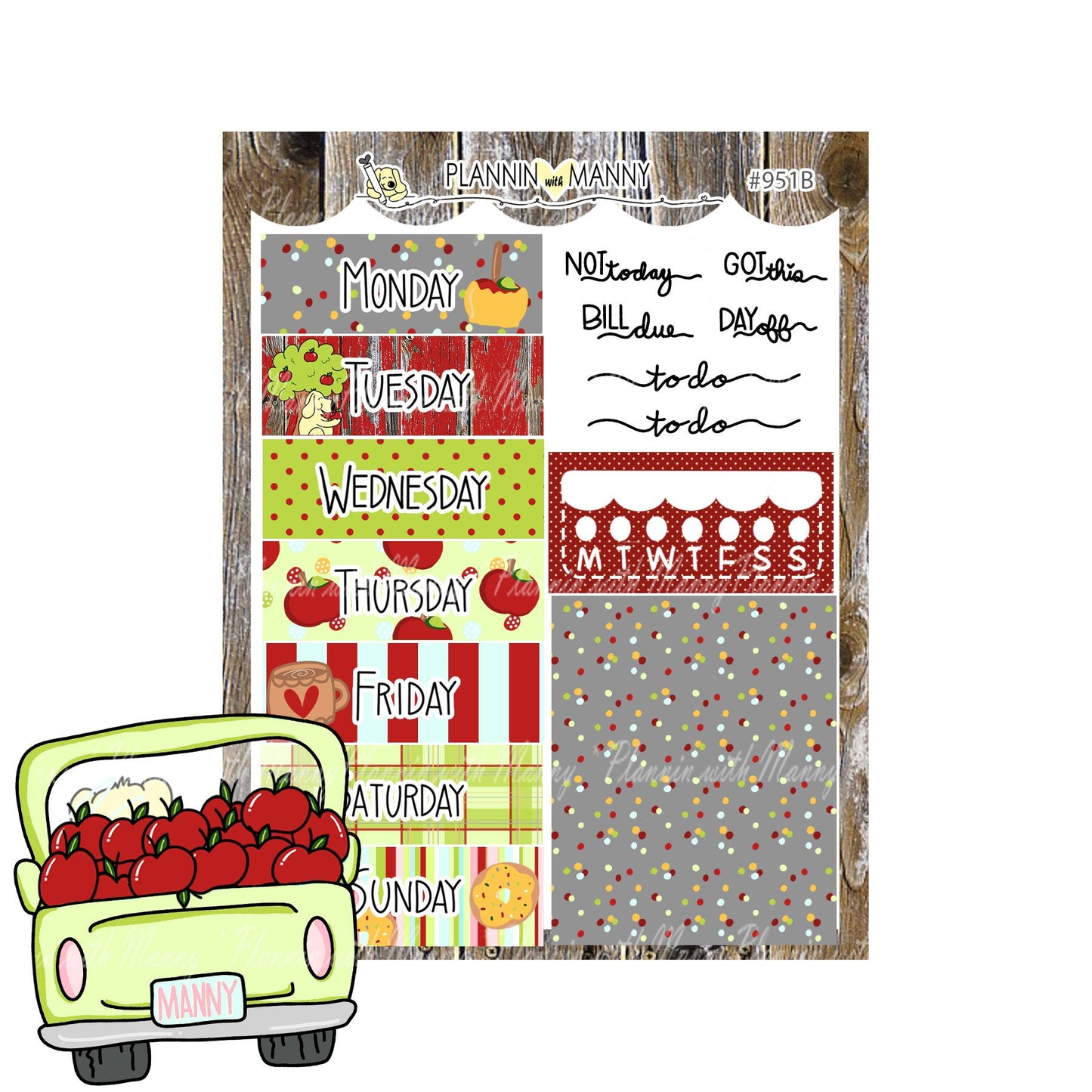 951 VERTICAL MINI Weekly Planner Stickers - Apple Days Collection