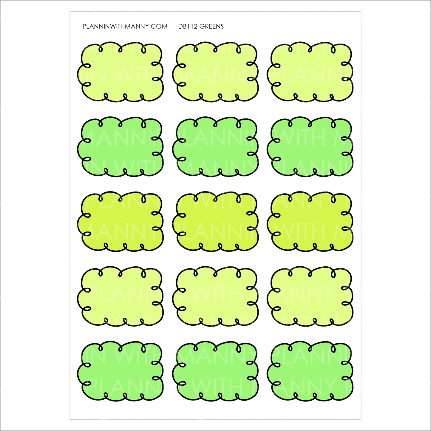 DB112 GREENS 1.5" Doodle Half Box Planner Stickers