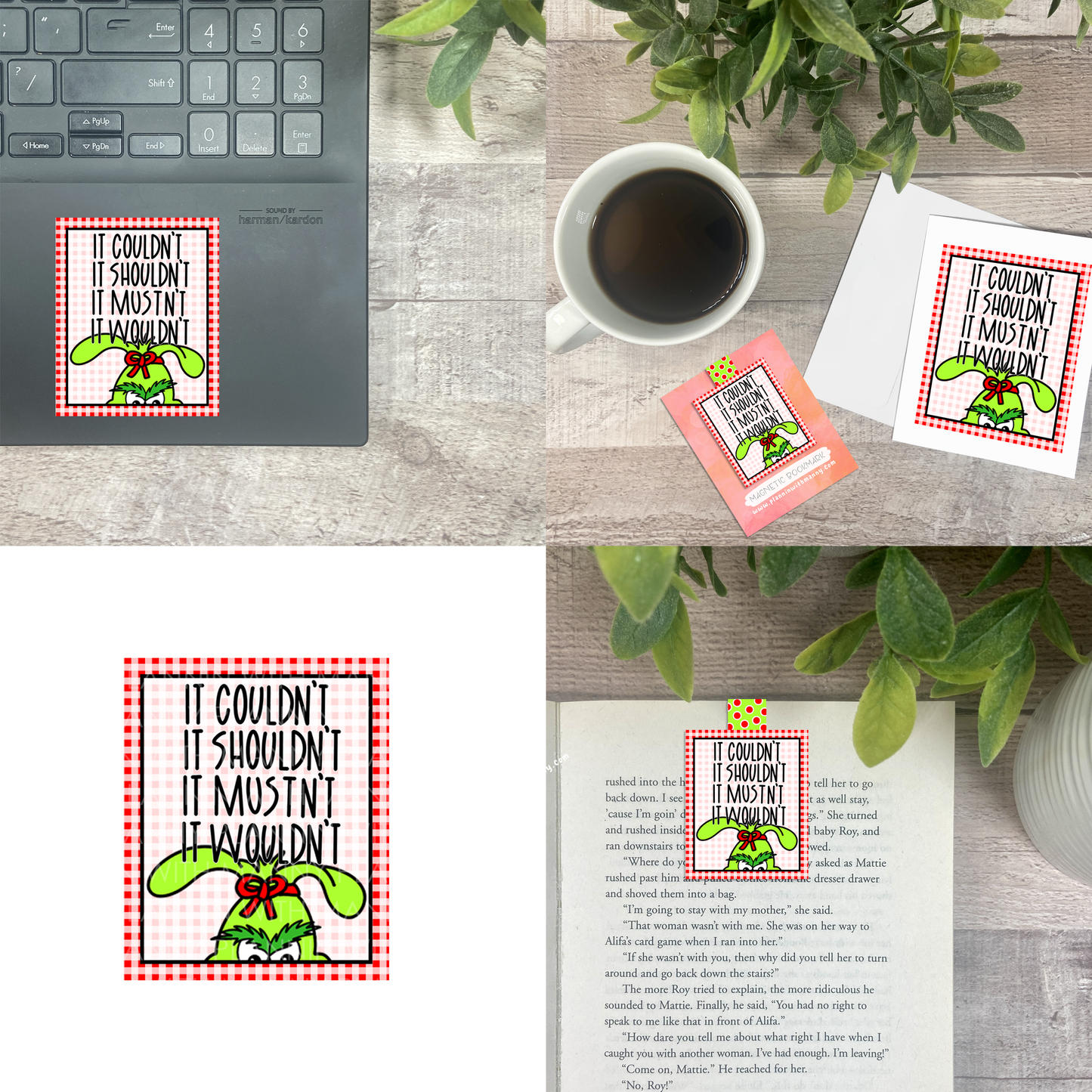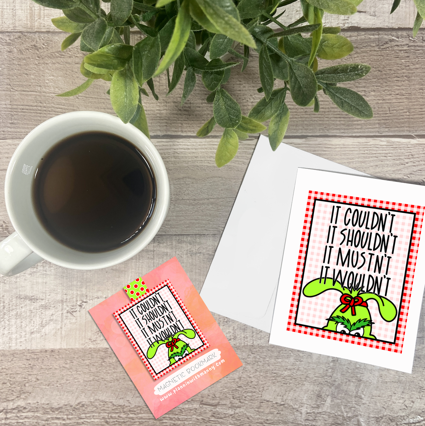 It Couldn't It Shouldn't Grinchy Vinyl Sticker, Magnetic Bookmark, & Notecard MB11